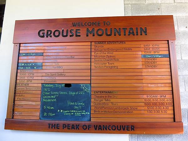 Grouse Mountain, 一年四季都有對外開放,但因為季節的不同, 開放的範圍也不一樣, 分為兩種:
